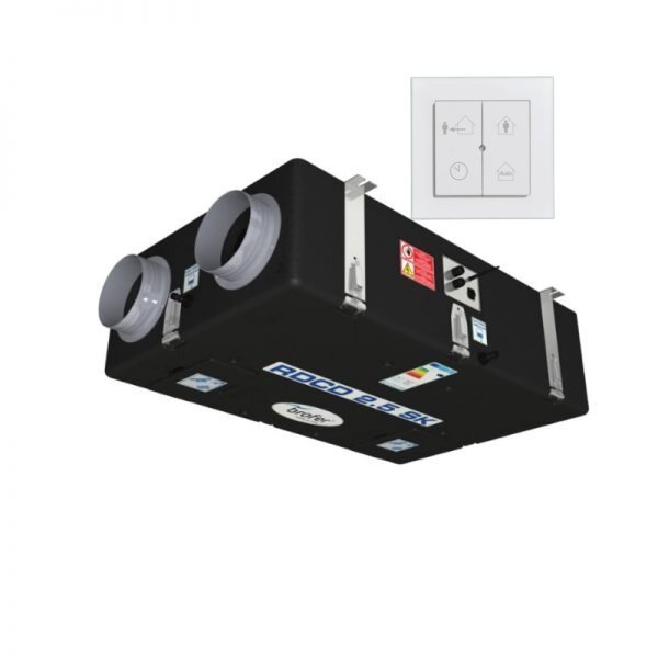 Bevielis valdymas; automatinis BY-PASS; EC ventiliatoriai. Galima montuoti vertikaliai ir horizontaliai.