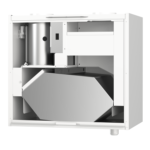 - Aukštas efektyvumas: Priešpriešinių srautų aukšto efektyvumo entalpinis šilumokaitis (A++), moduliuojama motorizuota automatinė „by-pass“ sklendė su vasaros/žiemos režimais. Įrenginio rekuperacinį elementą galima plauti vandeniu.