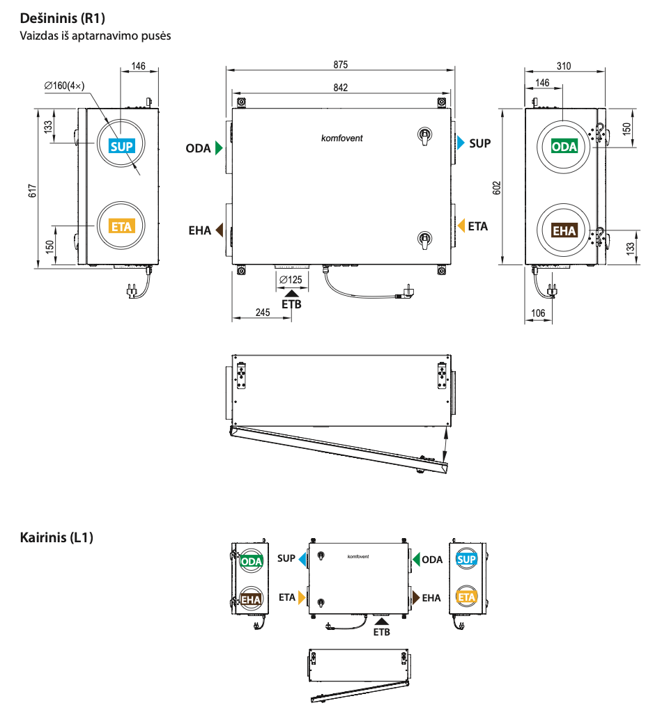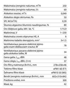 - Kondensacinis rotacinis šilumogrąžis efektyviai taupo šilumą, palaiko optimalų patalpų mikroklimatą, regeneruoja drėgmę žiemą