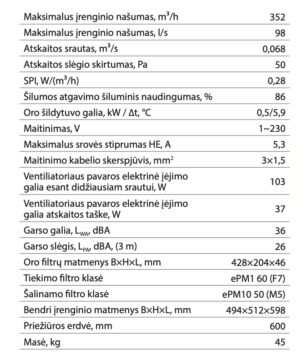 • Kondensacinis rotacinis šilumogrąžis efektyviai taupo šilumą, palaiko optimalų patalpų mikroklimatą, regeneruoja drėgmę žiemą