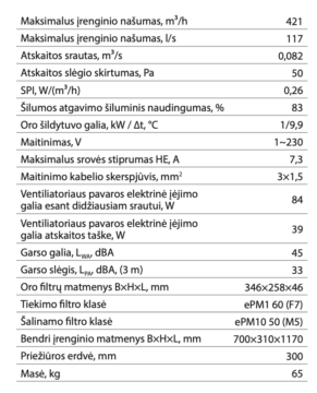 - Kondensacinis rotacinis šilumogrąžis efektyviai taupo šilumą, palaiko optimalų patalpų mikroklimatą, regeneruoja drėgmę žiemą