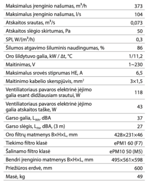 - Kondensacinis rotacinis šilumogrąžis efektyviai taupo šilumą, palaiko optimalų patalpų mikroklimatą, regeneruoja drėgmę žiemą